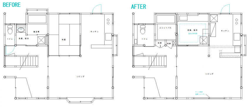 洗面脱衣所を中心に考えたリフォーム Before After Before After お孫さんのお世話がしにくかった脱衣所を中心にリフォーム 和室のスペースをバストイレに分配することでゆとりが生まれました 段差解消&床暖房設置でより安全で暖かに 広い洗面カウンターに、収納もたっぷり増やし、使いやすくなりました Before After 台風の時に不安だったという お声から、リビングの出窓を シャッター付きの断熱窓に 取り換え工事を行いました クリックで拡大 お施主様よりうれしいお声をいただきました 概要 工期:2021年3月~4月(約1ヵ月)総工費:約600万円 種別 木造 場所 豊田市