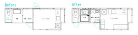 キッチン・浴室・トイレのリフォーム 寒いお風呂をユニットバスにし 床暖房も設置して暖かく 全体的なデザインや照明・壁紙(クロス)選びも楽しんで 明るい雰囲気に生まれ変わりました Before After 使いにくかったキッチンを配置換え システムキッチンを移動し吊戸棚を追加 勝手口を無くして冷蔵庫スペースにすることで 壁面にコンパクトなテーブルを設置 家電&食器棚も設置してすっきりと Before After ご夫婦よりうれしいお声をいただきました 概要 工期:2021年1月~2月(約1ヵ月)総工費:約460万円 種別 木造 場所 岡崎市