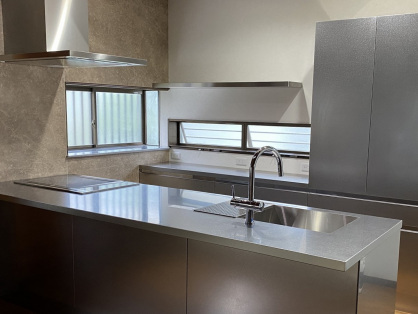 DKリニューアル 子供たちが独立しDKをリニューアル 食器棚を撤去してオープンキッチンに 材質は使い勝手が良いオールステンレス シェルフの配置やキッチンパネルにもこだわり 男前なキッチンになりました 浴室、洗面、給湯器等水廻りも取替え、 リニューアルした我が家で新生活スタートです Before After キッチン対面化、背面収納もステンレス Before After オープンキッチンに Before After パーツ選びにもこだわり満載 Before After 洗面台と床材を交換 概要 キッチン対面化、給湯器・洗面台・ユニットバス交換 種別 木造 場所 豊田市 工期 2022年10月~11月 (約10日) 工事価格 約350万円
